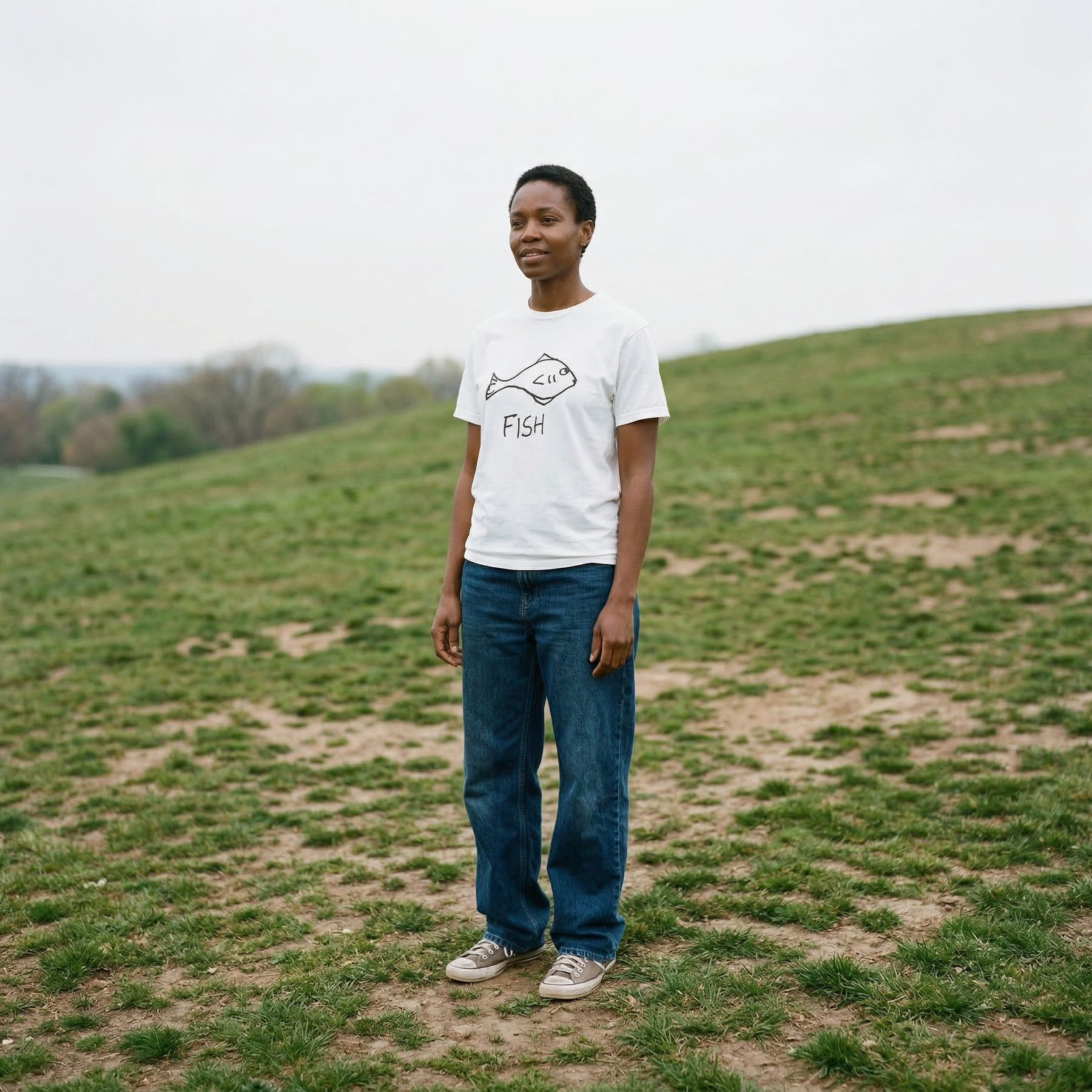 Fish shirt worn outdoors – minimalist lofi fish tee in natural setting