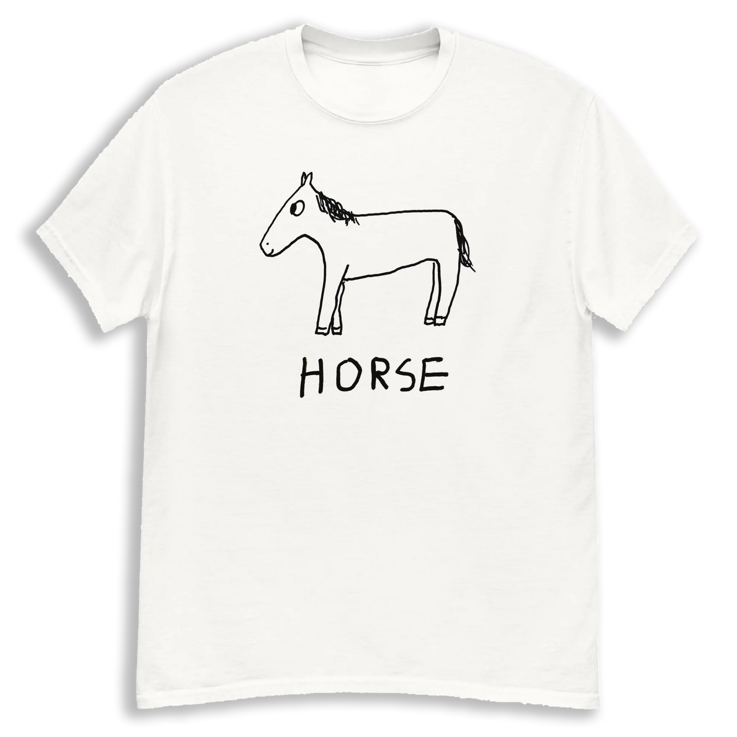 A horse is a horse. And a horse on a shirt is a horse on a shirt. This horse is on a shirt. This shirt has a horse. Any questions?