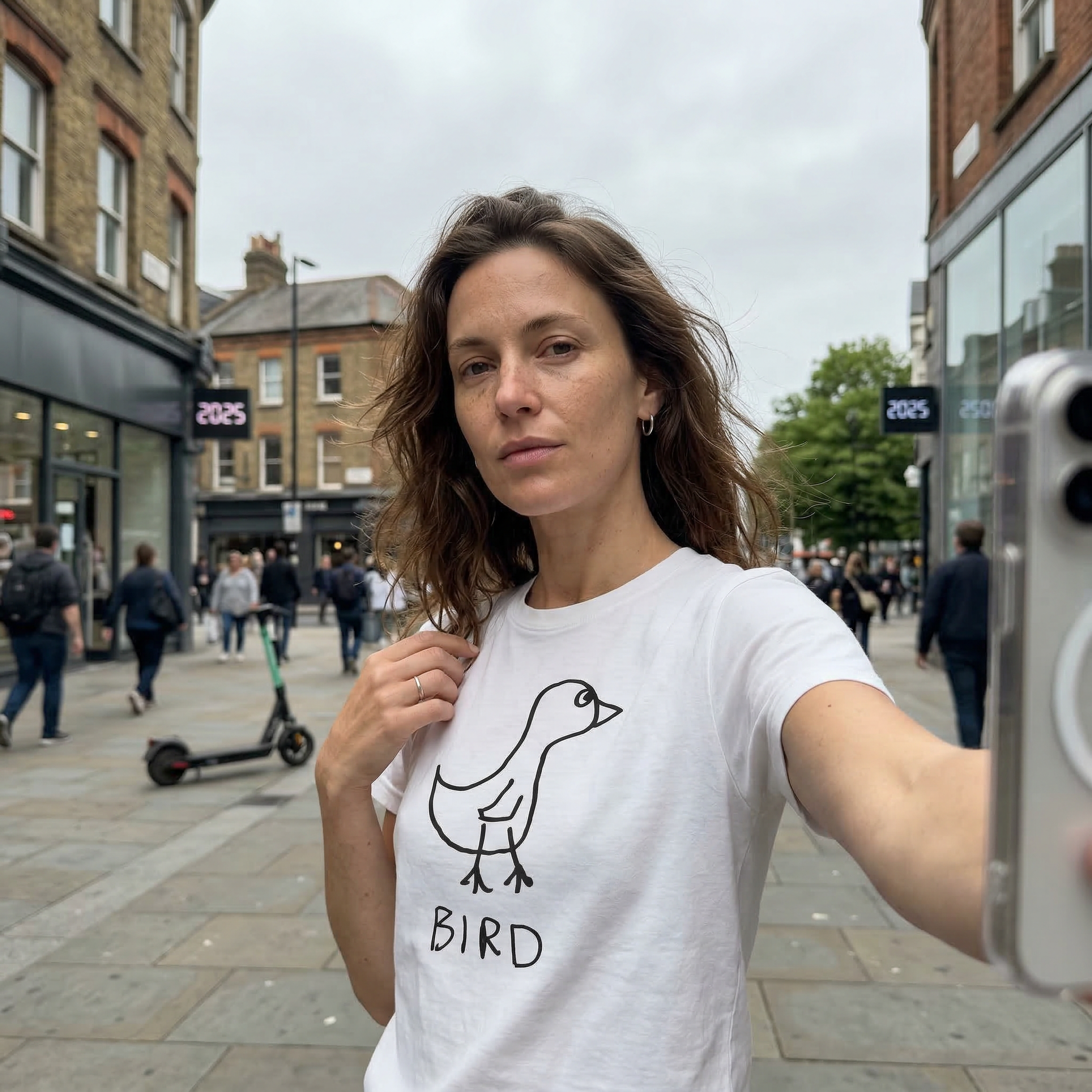 Bird graphic tee worn on London street – lofi animal shirt streetwear style