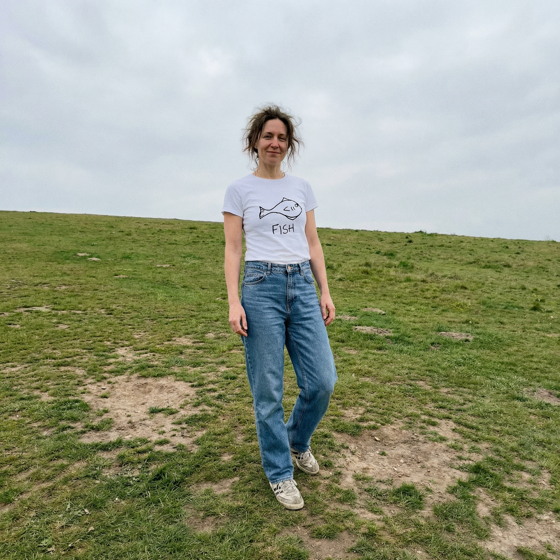 Fish graphic fitted tee fisheye shot – lofi animal shirt close-up
